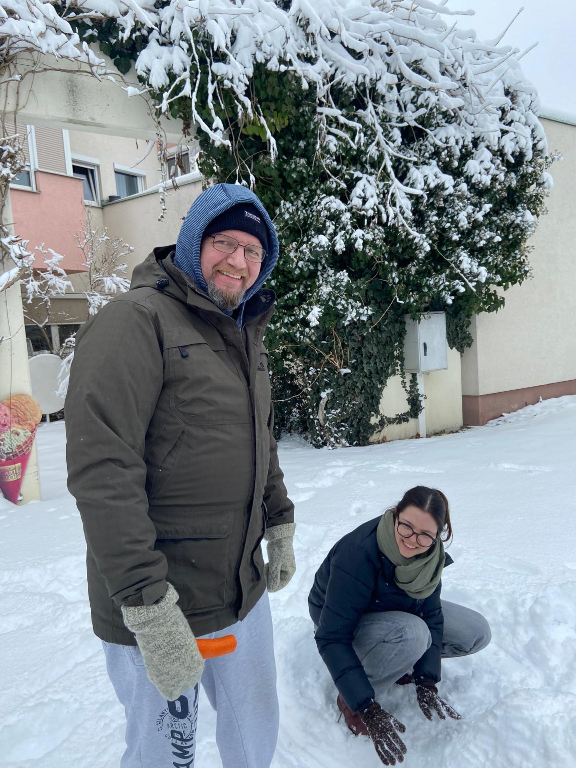 Mit viel Begeisterung wurde gemeinsam ein Schneemann gebaut. Dabei zeigte sich: Teamarbeit kennt kein Alter! Hand in Hand entstanden nicht nur Schneekugeln, sondern auch viele schöne Erinnerungen.