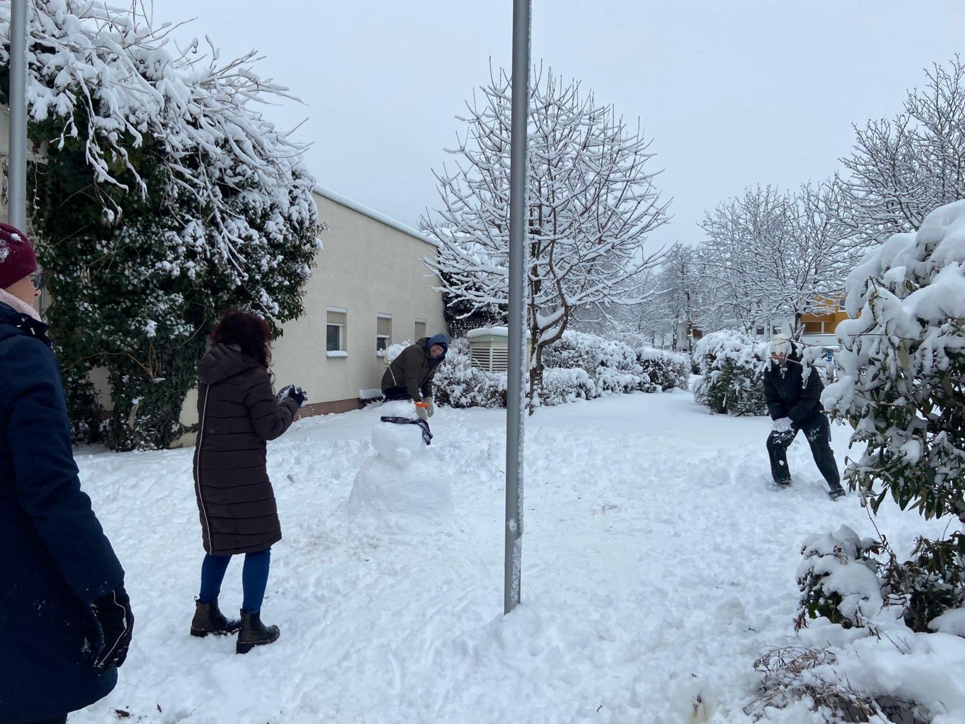 Ein besonderes Highlight war die fröhliche Schneeballschlacht zwischen Bewohnern, Mitarbeitern und den Schülern. Mit einem Augenzwinkern und viel Humor flogen die Schneebälle durch die Luft. Natürlich stand der Spaß im Vordergrund – und der ein oder andere „Treffer“ sorgte für herzhaftes Gelächter.
